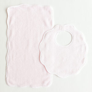 Pastel pink terrycloth with white scalloped trim